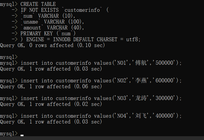 还有就是注意创建表的时候最后要加上字符码为utf8;