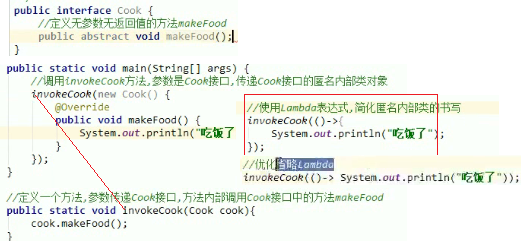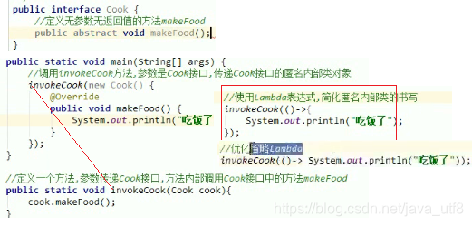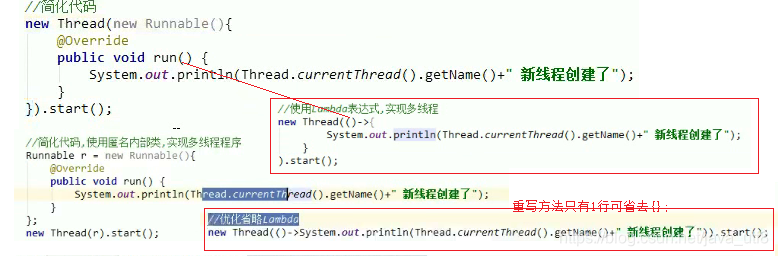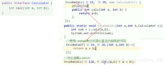 注意: 接口的方法中如果只有一句话,大括号可以省去,分号“;”也要省去。