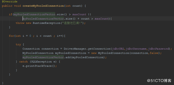 MyPooledConnection代表数据库操作管道,它可以执行SQL,关闭管道等。