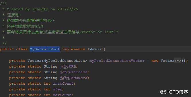 需要注意到是,MyDefaultPool持有一个管道集合,基于多线程的考虑,这里使用了Vector。