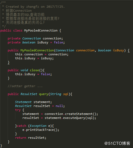 所谓数据库连接管道,就是对JDBC Connection进行封装而已,但是需要注意isBusy的这个标示。对管道的关闭,实际上只是标示的改变而已!