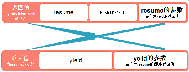 注:这是在非首次resume协程的情况下,resume和yield的互相调用的情况。如果是首次resume协程,那么resume的参数会直接传递给协程函数。