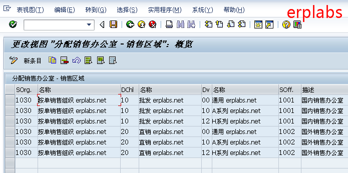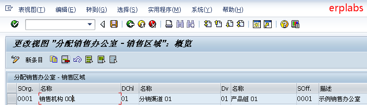 说明:为销售组织、销售渠道、产品组的组合分配销售办公室。