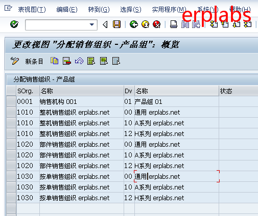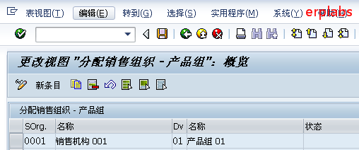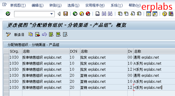 如上图示,输入销售组织、销售渠道、产品组的组合,保存。