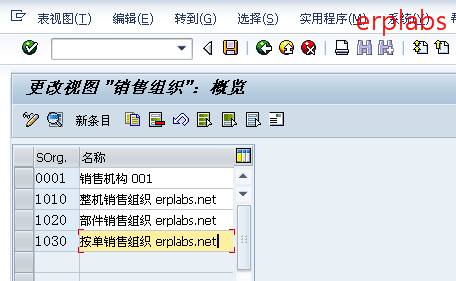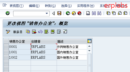 本案例设置二个销售办公室,1001国内办公室、1002国外办公室,保存。