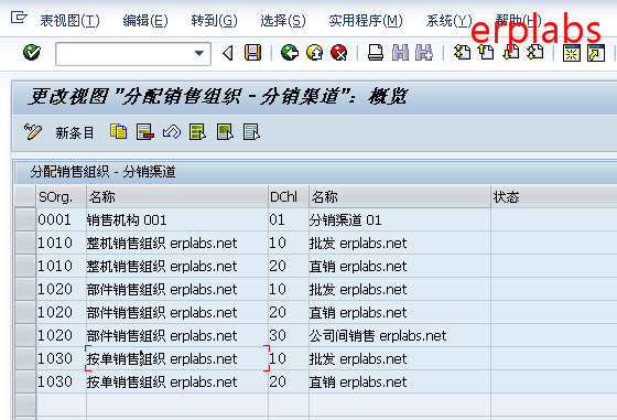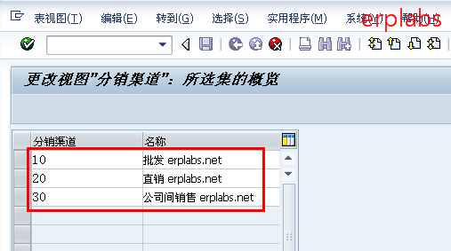 本案例设置三个分销渠道,10批发、20直销、30公司间销售,保存。