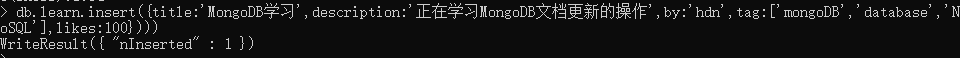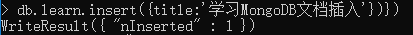 以上实例中learn是集合名,如果该集合不在数据库中,MongoDB会自动创建该集合并插入文档。