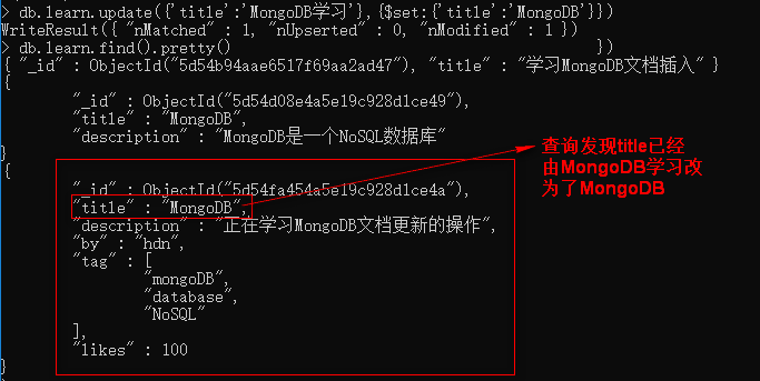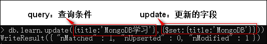 以上语句只会修改第一条发现的文档,如果要修改多条相同的文档,则需要设置multi参数为true。
