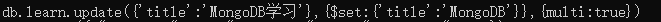 全部更新:db.learn.update( { "count" : { $gt : 3 } } , { $set : { "test" : "OK"} },false,true );