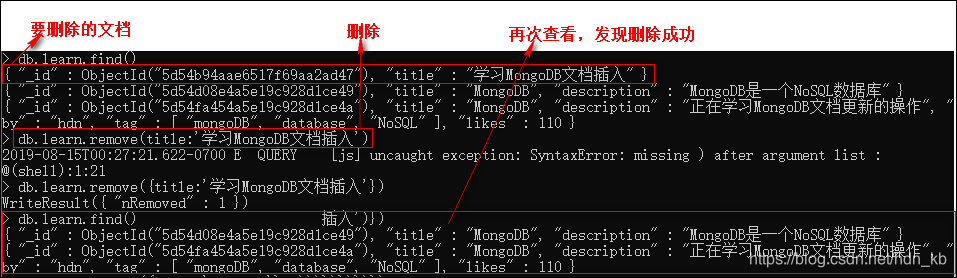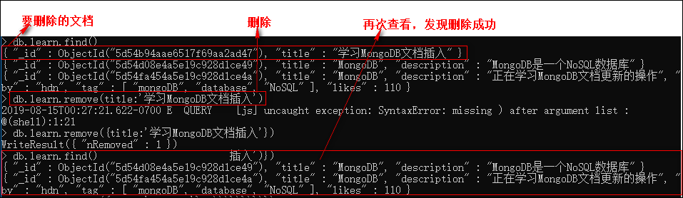在执行remove函数之前先执行find()命令来判断执行的条件是否正确,这是一个比较好的习惯。