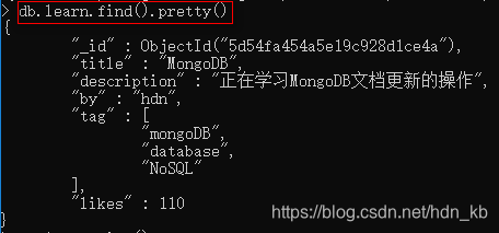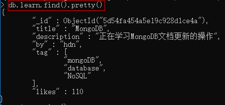db.COLLECTION_NAME.find().pretty()。//以格式化的方式读取数据