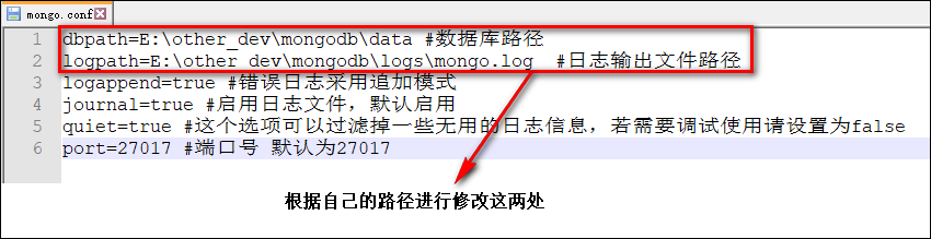 logpath=E:\other_dev\mongodb\logs\mongo.log #日志输出文件路径