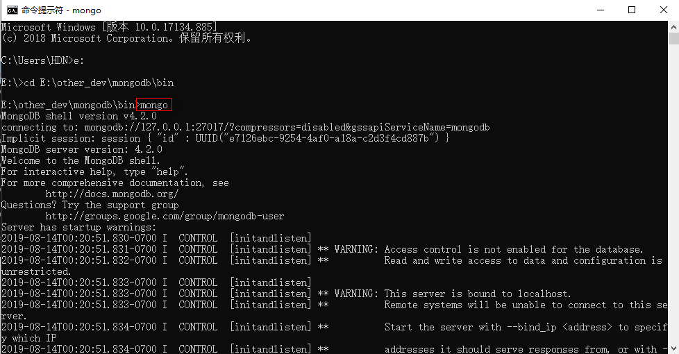第一步:mongod --dbpath E:\other_dev\mongodb\data