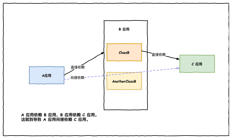 A 业务使用 Dubbo 进行 RPC 调用, Dubbo 需要依赖 javassist。当前依赖关系为: