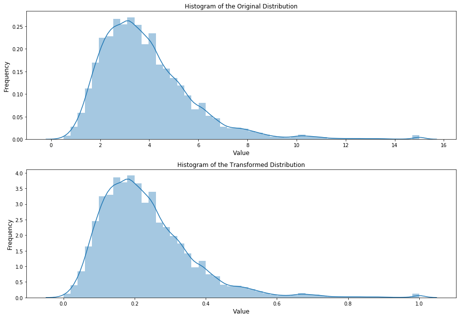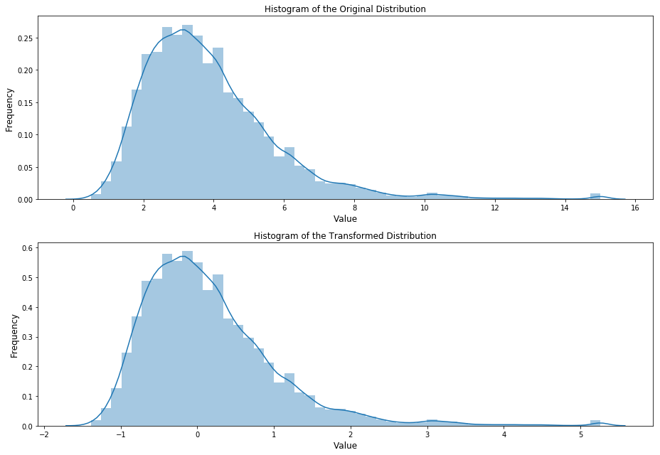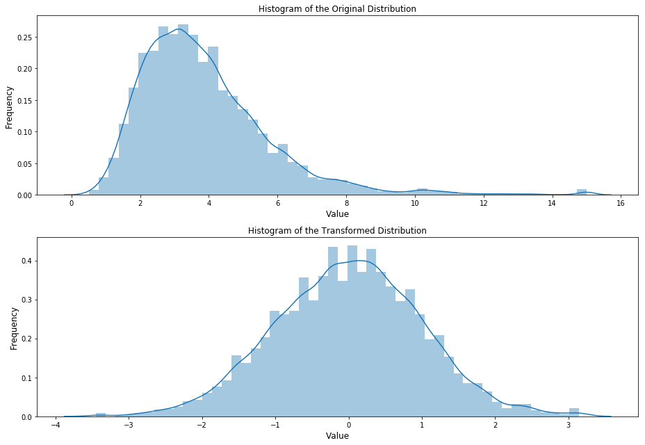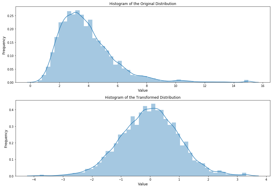 ax[1].set_title('Histogram of the Transformed Distribution', fontsize=12)