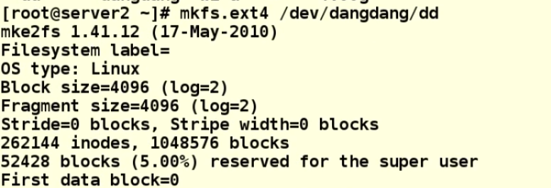 mkfs.gfs2 -p lock_dlm -j 2 -t westos_dd:mygfs2 /dev/dangdang/dd