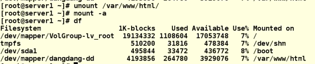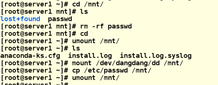 然后在server1和2同时进行挂载操作(只是临时挂载)