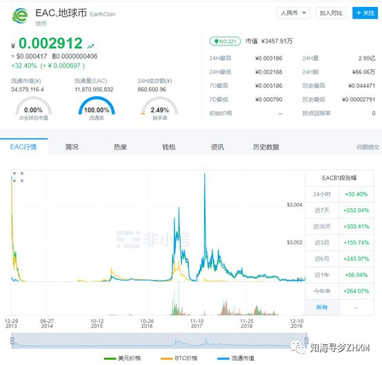 近期,地球币EAC忽然一跃而起,一周时间上涨400%,而其他比特币等主流币又悄无声息,许多伙伴急着咨询,故借本文做一简要解析: