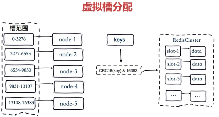 - 指派槽:redis默认有16384个槽,为了达到负载均衡效果,redis会为每个节点指派指定数量的槽