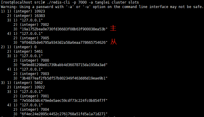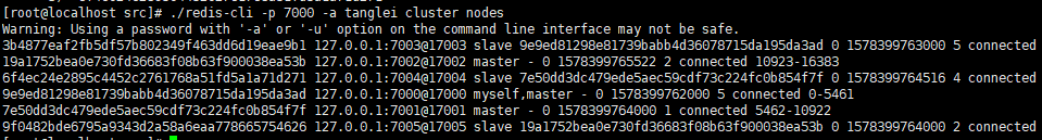 >> ./src/redis-cli -p 7000 -a tanglei cluster nodes