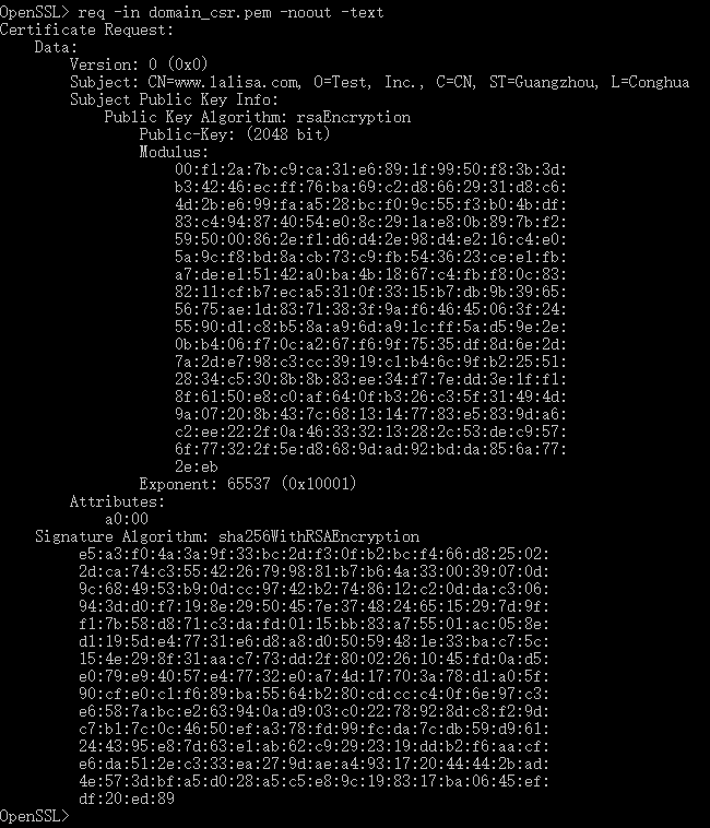 生成CSR文件后,我们可以打开看一看里面的信息: