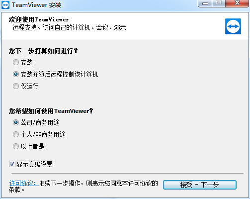 TeamViewer是一个能在任何防火墙和NAT代理的后台用于远程控制的应用程序,桌面共享和文件传输的简单且快速的解决方案。为了连接到另一台计算机,只需要在两台计算机上同时运行 TeamViewer 即可,而不需要进行安装(也可以选择安装,安装后可以设置开机运行)。该软件第一次启动在两台计算机上自动生成伙伴 ID。只需要输入你的伙伴的ID到TeamViewer,然后就会立即建立起连接。