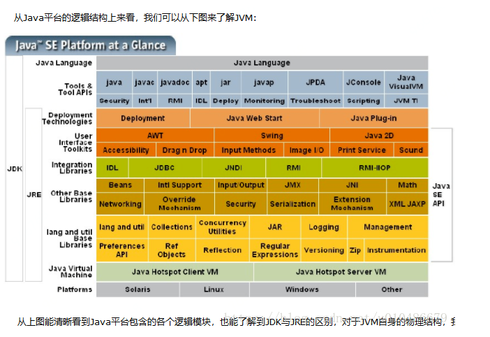 Java语言的一个非常重要的特点就是与平台的无关性。而使用Java虚拟机是实现这一特点的关键。一般的高级语言如果要在不同的平台上运行,至少需要编译成不同的目标代码。而引入Java语言虚拟机后,Java语言在不同平台上运行时不需要重新编译。Java语言使用Java虚拟机屏蔽了与具体平台相关的信息,使得Java语言编译程序只需生成在Java虚拟机上运行的目标代码(字节码),就可以在多种平台上不加修改地运行。Java虚拟机在执行字节码时,把字节码解释成具体平台上的机器指令执行。这就是Java的能够“一次编译,到处运行”的原因。