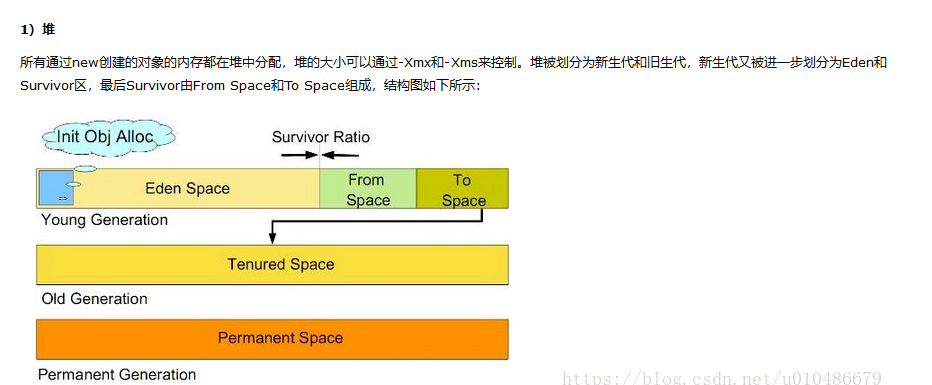 新生代。新建的对象都是用新生代分配内存,Eden空间不足的时候,会把存活的对象转移到Survivor中,新生代大小可以由-Xmn来控制,也可以用-XX:SurvivorRatio来控制Eden和Survivor的比例