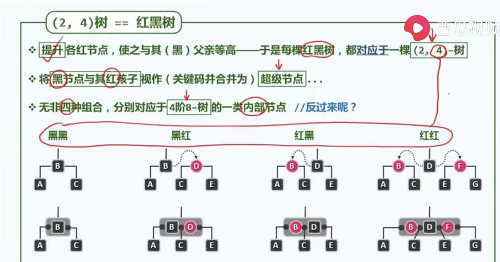 - 其余节点:若为红,则只能有黑孩子(红节点,之父必黑)