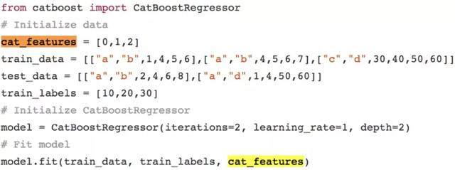 注意,如果某一列数据中包含字符串值,CatBoost 算法就会抛出错误。另外,带有默认值的 int 型变量也会默认被当成数值数据处理。在 CatBoost 中,必须对变量进行声明,才可以让算法将其作为分类变量处理。