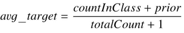 其中 CountInClass 表示在当前分类特征值中,有多少样本的标记值是「1」;Prior 是分子的初始值,根据初始参数确定。TotalCount 是在所有样本中(包含当前样本),和当前样本具有相同的分类特征值的样本数量。