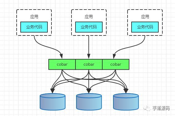 阿里 b2b 团队开发和开源的,属于 proxy 层方案,就是介于应用服务器和数据库服务器之间。应用程序通过 JDBC 驱动访问 Cobar 集群,Cobar 根据 SQL 和分库规则对 SQL 做分解,然后分发到 MySQL 集群不同的数据库实例上执行。