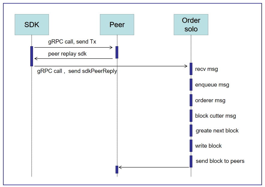 (3)SDK通过gRPC连接Order,将(2)的sdkPeerReply发送给Order,执行Solo共识服务: