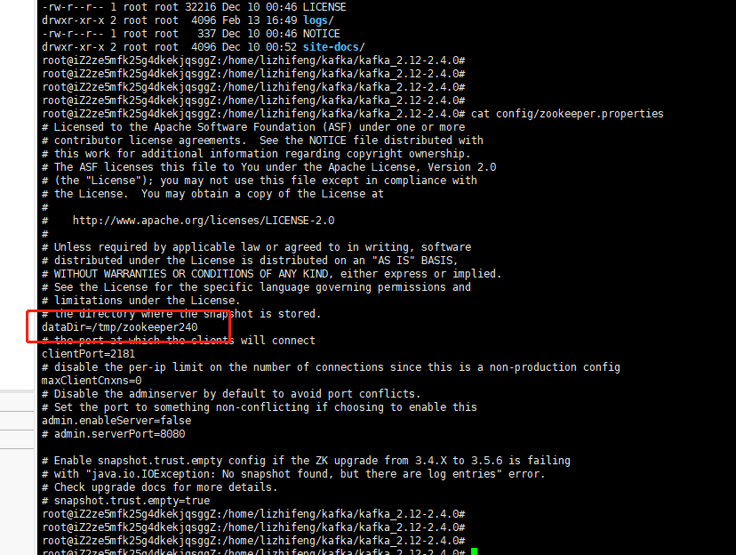 2.1 启动zookeeper , bin/zookeeper-server-start.sh config/zookeeper.properties