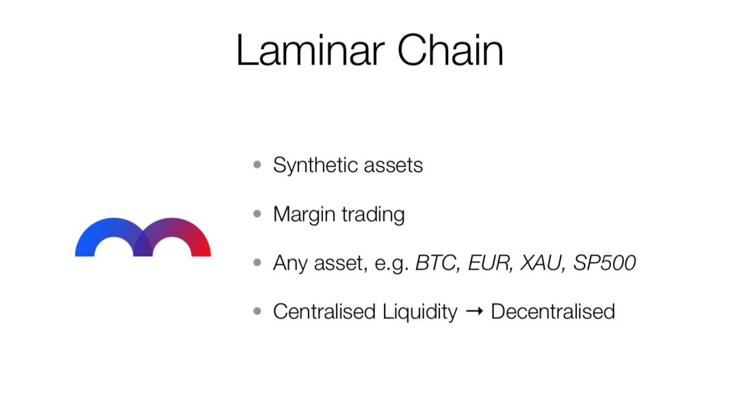 流动性提供者能够抵消中心化世界的损失,并能够从传统金融提供者那里获得更多的利差。通过赚取这样的价差,很显然他们已经有一些利润了,但是他们也将承担一些风险。所以他们承担着中心化交易所的风险,想办法在链上提供一个合理的价格,对于交易者来说他们需要以一种去中心化的方式来实现交易。这就为区块链提供了前所未有的流通性,也是 Laminar 所认为的能够为去中心化机构提供流通性的方法。
