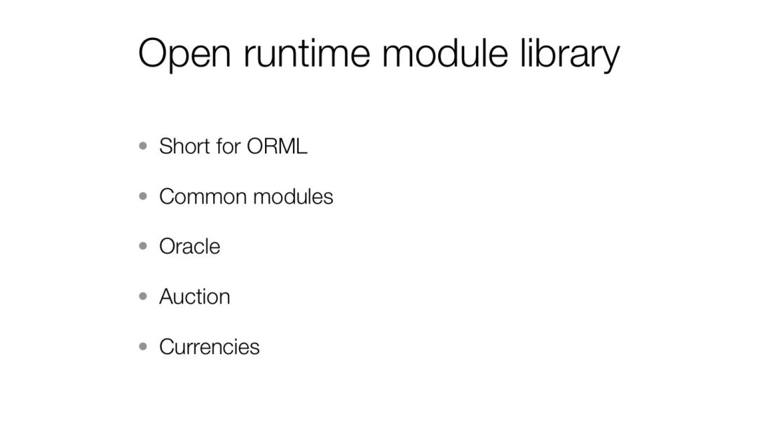另外还展示了 Acala 底层运行模块将由 ORML、一些通用的模块还有预言机和拍卖、货币等模块构成
