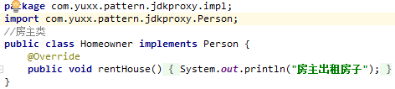 然后定义一个房主类,这是个被代理类,实现了Person接口: