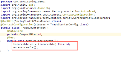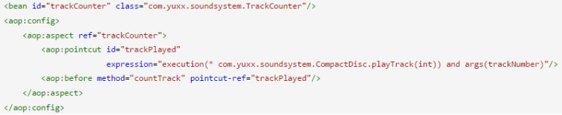 然后在XML配置中,声明TrackCounter bean和BlankDisc bean,并将 TrackCounter 转化为切面。