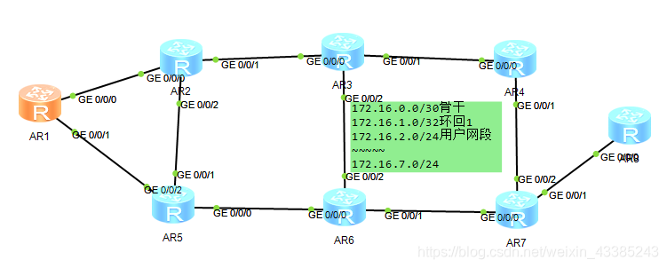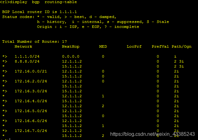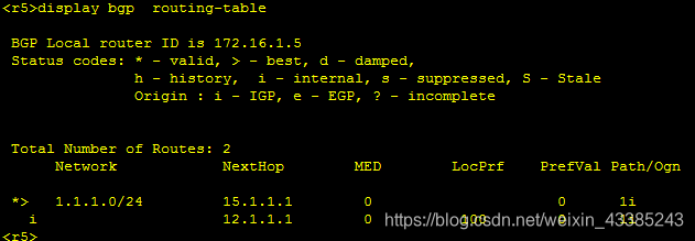 [r2-bgp]peer 172.16.1.5 next-hop-local //防止R1至R5的链路断开,让R2和R5成为IBGP关系,导致路由不传递。
