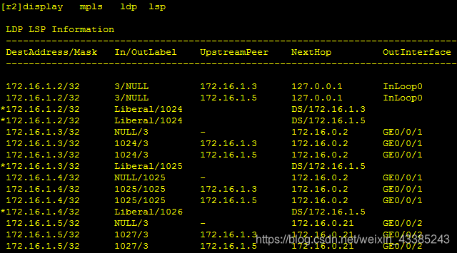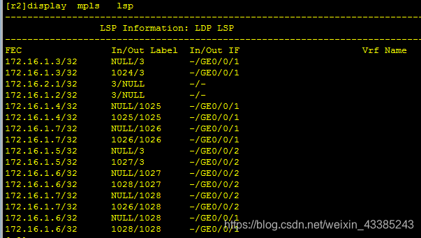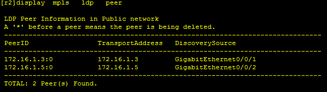 [r2]mpls lsr-id 172.16.1.2 //必须先定义mpls的router-id,要为本地设备的真实ip地址,且邻居可达