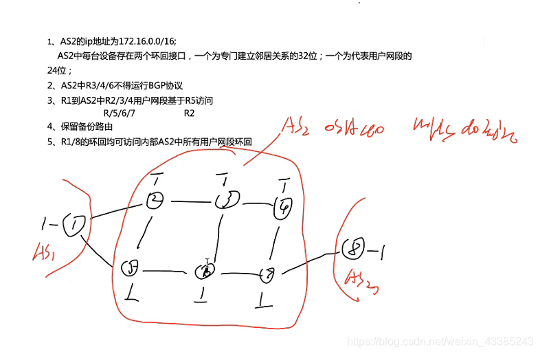 AS2bgp路由宣告,R2/R5/R7相同操作。