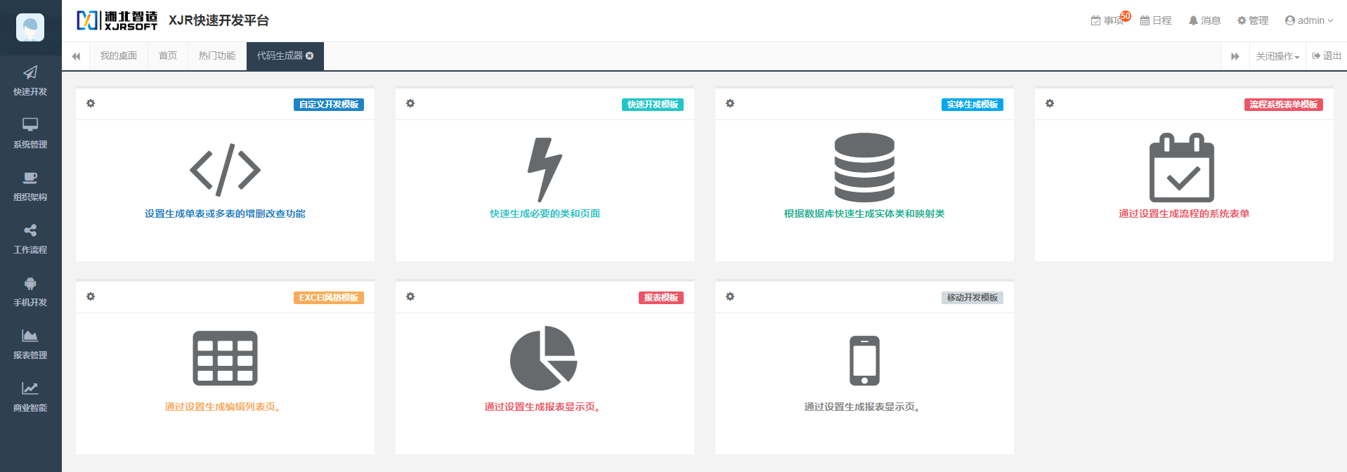 XJR快速开发平台的代码生成器已经把常用的开发场景做成开发模板,按照开发向导一步步走,在遇到有复杂业务逻辑的地方稍作修改就可以。当然XJR快速开发平台提供了源代码,您的开发水平比较高的话可以做深层次的扩展。
