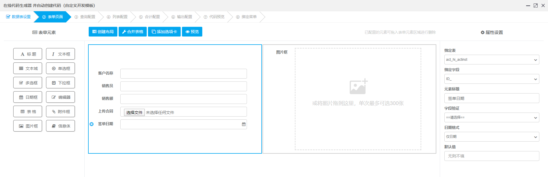 点击图中的“下一步”进入表单开发界面,可以随意,如图