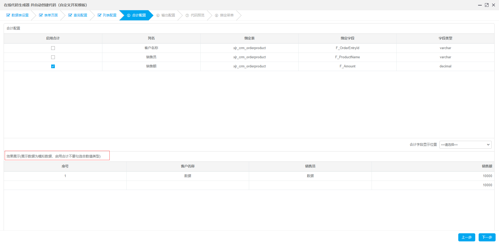7、设置合计配置
