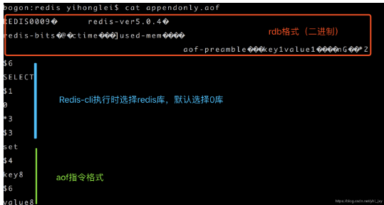 从文件格式可以看到,混合持久化appendonly.aof文件由rdb格式和aof指令格式两大部分组成。
