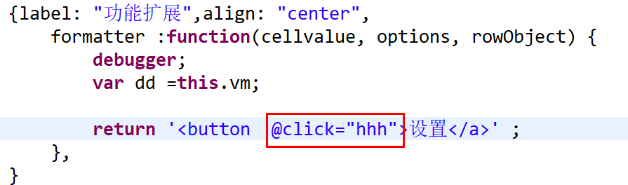 smart-tab组件内部使用的是jqgrid组件。如果在jqgrid中绑定vue的事件会失效。 因为在组件初始化的时候vue比jqgrid先执行。@click=“hhh”不会被编译。