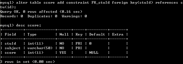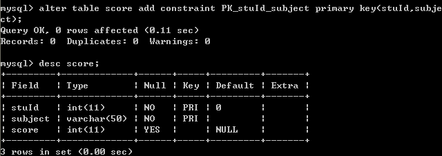 十七。给score设置联合主键(stuId,subject)