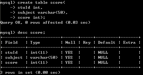 十六、新建表score