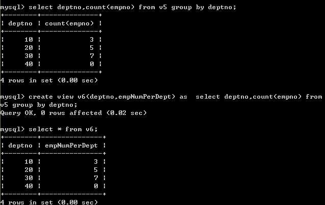 创建一个视图,用来展示每个部门员工人数