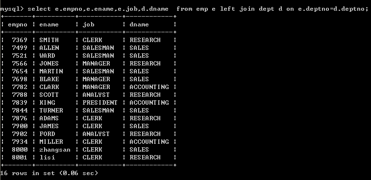 内连接:既不以左表为基准,也不以右表为基准,而是把两张表相关的数据配合显示